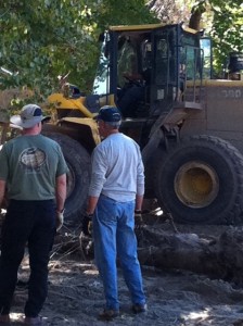 Once I got to Rusty’s it was rather strange. It looked like his place and it didn’t. The house and shop were there, like usual, but there were sheds stacked up against it on the west side. The trees along the banks of the river are still there, but there was junk washed up against them five or six feet high. There were places where the bank had washed away, mostly down at the east end. The little park across the river was nothing but boulders and gravel. Having been through both, Rusty is certain that this flood was substantially worse than the Big Thompson flood of 1976, and his place sustained a lot more damage.